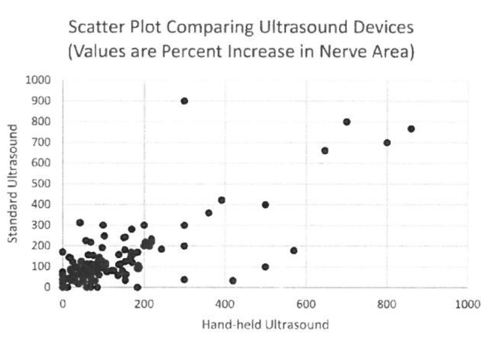 Fig 1. Percent increase in nerve cross-sectional area over the upper limit of normal of reference values are compared between standard and hand-held ultrasound devices.